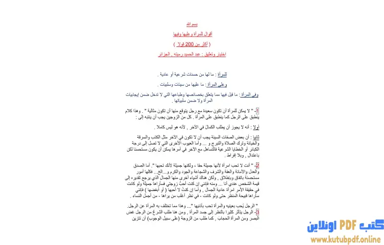 تحميل كتاب أقوال للمرأة وعليها وفيها PDF – عبدالحميد رميته – يتناول كتاب أقوال للمرأة وعليها وفيها للكاتب عبدالحميد رميته مجموعة من الأفكار التي تتعلق بالمرأة من جوانب متعددة فهو يستعرض ما لها من حسنات سواء كانت شرعية أو عادية كما يتناول ما عليها من سيئات وسلبيات ويقدم تحليلاً لخصائص المرأة وطباعها التي لا تندرج تحت إطار الإيجابيات أو السلبيات