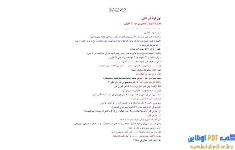 تحميل كتاب أول ليلة في القبر PDF – عائض القرني