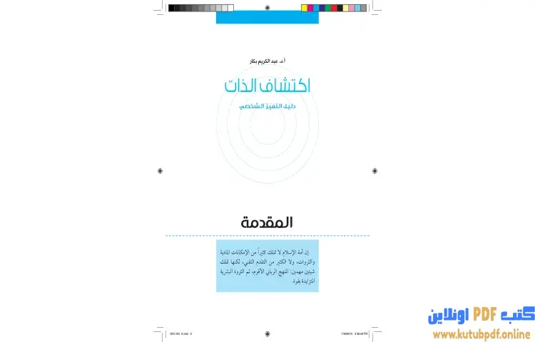 تحميل كتاب اكتشاف الذات PDF – عبد الكريم بكار – يعد كتاب اكتشاف الذات للكاتب عبد الكريم بكار مرجعًا مهمًا يتناول قضايا متعددة تتعلق بتكوين الذات واكتشافها، حيث يقدم مجموعة من المداخل والإضاءات التي تساعد القارئ على فهم أبعاد شخصيته. يحتوي الكتاب على مرشدات ومؤشرات متنوعة، يتم تقديمها في شكل تقريرات مباشرة وغير مباشرة، تهدف إلى إيقاظ وعي المسلم نحو الآفاق الواسعة والمتعددة التي تسهم في تنمية الشخصية والنهوض بها.
