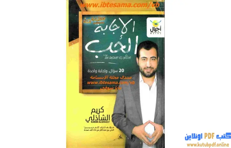 تحميل كتاب الإجابة الحب PDF – كريم الشاذلي – كتاب الحب لكاتبه كريم الشاذلي يعتبر تجربة فريدة تأخذ القارئ في رحلة من المشاعر الإنسانية المتنوعة مثل الشوق والوجد والفراق. يتناول الكتاب تأثير هذه المشاعر على النفس البشرية وكيف يمكن أن تشعل النار في القلوب، مما يؤدي إلى تجارب عاطفية عميقة لا يمكن تصورها. يعكس الكتاب كيف أن الحب والبعد يمكن أن يؤثرا على العلاقات، ويجعل القلوب تسهر في التفكير والحنين.