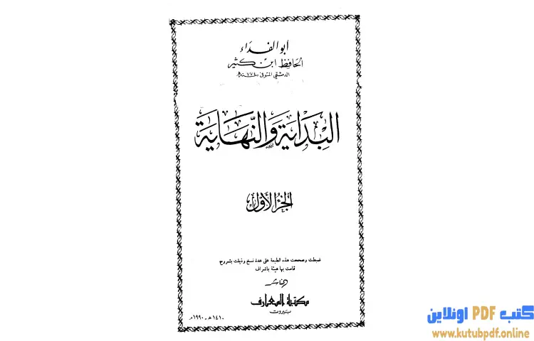 تحميل كتاب البداية والنهاية 1 PDF – ابن كثير – البداية والنهاية هو عمل موسوعي تاريخي ضخم ألفه ابن كثير إسماعيل بن عمر الدمشقي الذي توفي سنة 774هـ ويعتبر هذا الكتاب مؤسساً على معتقدات الديانة الإسلامية حيث يقدم عرضاً شاملاً للتاريخ بدءاً من خلق السماوات والأرض والملائكة وصولاً إلى خلق آدم ويتناول الكتاب قصص الأنبياء بشكل مختصر قبل أن يتعمق في سرد الأحداث التاريخية منذ مبعث النبي محمد صلى الله عليه وسلم وحتى سنة 767 هـ.