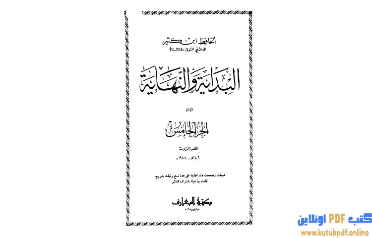 تحميل كتاب البداية والنهاية 5 PDF – ابن كثير – البداية والنهاية هو عمل موسوعي تاريخي ضخم ألفه ابن كثير إسماعيل بن عمر الدمشقي المتوفي سنة 774هـ ويعتبر الكتاب مؤلفاً وفق معتقدات الديانة الإسلامية حيث يقدم عرضاً للتاريخ بدءاً من خلق السماوات والأرض والملائكة ووصولاً إلى خلق آدم ويستعرض الكتاب قصص الأنبياء بشكل مختصر قبل أن يتناول الأحداث التاريخية بالتفصيل.