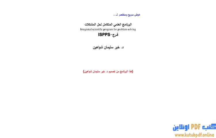 تحميل كتاب البرنامج العلمي المتكامل لحل المشكلات (فرج) PDF – خير سليمان شواهين – يعتبر البرنامج العلمي المتكامل لحل المشكلات الذي طوره خير سليمان شواهين مبادرة فريدة من نوعها تهدف إلى تعزيز مهارات حل المشكلات التي لم تحظ بالاهتمام الكافي مقارنة ببرامج التفكير الأخرى مثل التفكير الناقد والإبداعي. يستند هذا البرنامج إلى خبرة شواهين الطويلة في مجالات مختلفة ويقدم منهجية علمية متكاملة لحل المشكلات، مما يجعله أداة قيمة لكل من يسعى لتطوير مهاراته في هذا المجال.