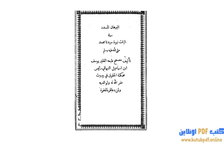 تحميل كتاب البرهان المسدد في إثبات نبوة سيدنا محمد صلى الله عليه وسلم PDF – يوسف بن إسماعيل النبهاني