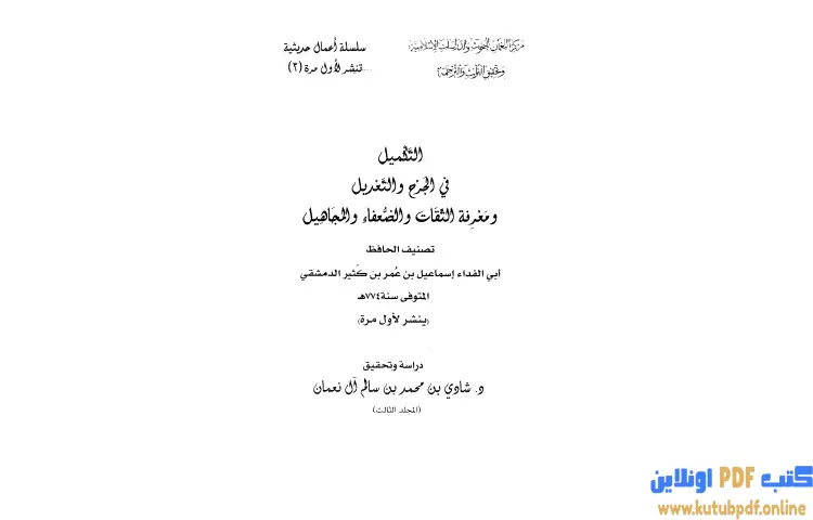 تحميل كتاب التكميل في الجرح والتعديل ومعرفة الثقات والضعفاء والمجاهيل 3 PDF – ابن كثير