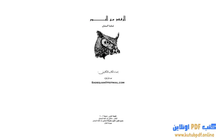 تحميل كتاب الرقص مع البوم PDF – غادة السمان – الرقص مع البوم هو عمل أدبي مميز للكاتبة غادة السمان يقدم تأملات عميقة في الحب والحرية والتفاعل بين الإنسان والطبيعة يطرح الكتاب تساؤلات حول المفاهيم التي نعتنقها وكيف تؤثر على علاقاتنا وأفكارنا ويشجع القارئ على إعادة تقييم اختياراته وما يحبه وما يكرهه في الحياة