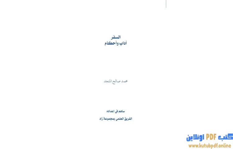 تحميل كتاب السفر آداب وأحكام PDF – محمد صالح المنجد – السفر آداب وأحكام هو كتاب للمؤلف محمد صالح المنجد يتناول موضوع السفر من جوانب متعددة بما في ذلك آدابه وأحكامه الشرعية. يبدأ المؤلف بالحديث عن كثرة الأسفار وتنوعها خلال الإجازات الموسمية، حيث يشير إلى أن السفر قد يكون لأغراض دينية مثل الحج والعمرة وزيارة المسجد النبوي وصلة الرحم والدعوة إلى الله وطلب العلم، كما يمكن أن يكون سفرًا مباحًا مثل التجارة والسياحة الترويحية.