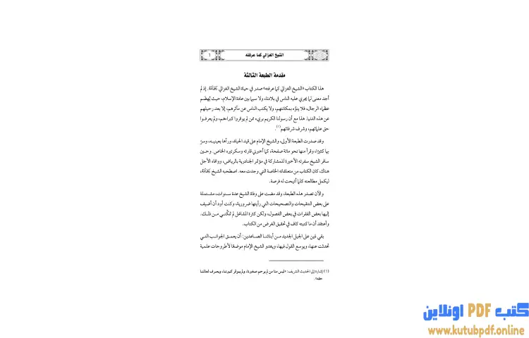 تحميل كتاب الشيخ الغزالي كما عرفته رحلة نصف قرن PDF – يوسف القرضاوي – يستعرض كتاب "الشيخ الغزالي كما عرفته" للكاتب يوسف القرضاوي شخصية الشيخ الغزالي ويقدم صورة حقيقية عن حياته وتأثيره في مجتمعه. يتناول الكتاب مسيرة الشيخ الغزالي منذ نشأته وحتى وفاته، مسلطًا الضوء على مآثره وأفكاره التي شكلت جزءًا من التراث الإسلامي الحديث. يلفت القرضاوي الانتباه إلى حقيقة أن الكثير من الشخصيات العظيمة لا تُذكر مآثرها إلا بعد وفاتها، وهو ما دفعه لتوثيق تجربة الشيخ الغزالي في حياته.