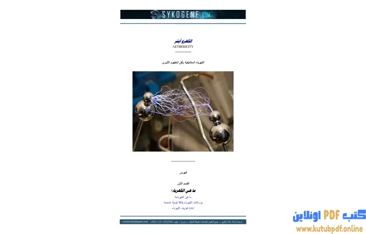 تحميل كتاب الكهروأثير PDF – علاء الحلبي – تتناول كتاب الكهروأثير للكاتب علاء الحلبي مفهوم الطاقة الكهربائية التي نستخدمها اليوم وتعتبر إحدى أشكال الطاقة الكهربائية لكنها ليست الطاقة المثلى. يشير الكاتب إلى أن الكهرباء التي نعرفها بحاجة إلى أسلاك لنقلها، مما يفرض قيودا على استخدامها ويجعلها تعتمد على شبكة معقدة من التوزيع. كما يتطرق الكتاب إلى فكرة وجود عدادات لبيع الطاقة للجمهور، مما يعكس السيطرة الاقتصادية على هذا المورد الحيوي.