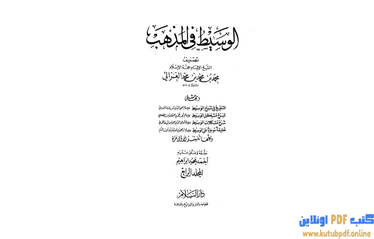 تحميل كتاب الوسيط في المذهب المجلد الرابع PDF – أبو حامد الغزالي – الوسيط في المذهب هو عمل متميز للإمام أبو حامد الغزالي في مجال الفقه، حيث يعد هذا الكتاب بمثابة تلخيص شامل لكتابه السابق المعروف بالبسيط، الذي يتسم بالتفصيل. وقد قام الغزالي بتقليص المحتوى في الوسيط، حيث أزال الأقوال الضعيفة والوجوه المزيفة والتفريعات الشاذة النادرة، ليقدم مادة علمية أكثر تركيزًا ووضوحًا.