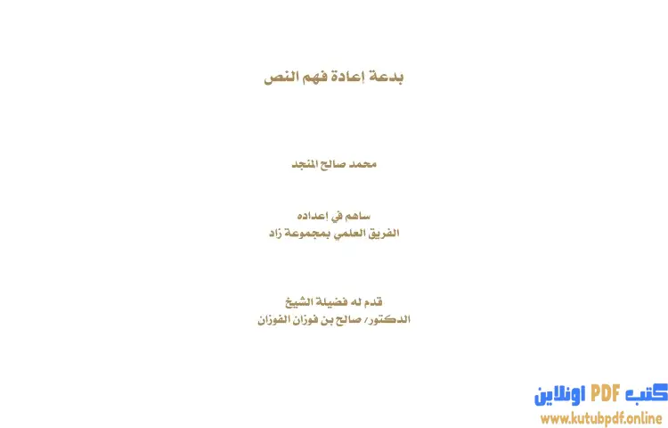 تحميل كتاب بدعة إعادة فهم النص PDF – محمد صالح المنجد