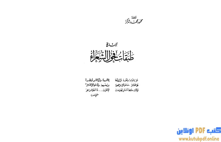 تحميل كتاب برنامج طبقات فحول الشعراء PDF – محمود محمد شاكر – يعد كتاب طبقات فحول الشعراء من تأليف محمود محمد شاكر أحد المراجع البارزة في الأدب العربي حيث يقدم دراسة شاملة عن أبرز الشعراء العرب عبر العصور ويستعرض تميزهم وإسهاماتهم الأدبية ويسلط الضوء على مكانتهم في تاريخ الشعر العربي