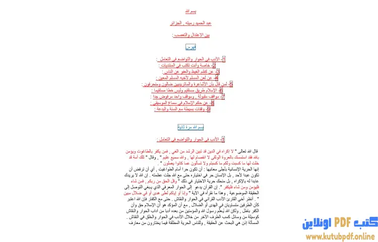تحميل كتاب بين الاعتدال والتعصب PDF – عبدالحميد رميته – كتاب بين الاعتدال والتعصب للمؤلف عبدالحميد رميته يتناول موضوعات مهمة تتعلق بالأسس الأخلاقية والسلوكية في الإسلام من خلال عدة محاور رئيسية يقدمها بأسلوب تحليلي واضح يجمع بين الأدب في الحوار والتواضع في التعامل مع الآخرين خاصة في بيئات النقاش مثل المنتديات حيث يتطلب الأمر كظم الغيظ والعفو عن الناس بغض النظر عن المواقف المحرجة التي قد يتعرض لها الفرد كما يسلط الضوء على خطورة لعن المسلم لأخيه المسلم حيث يعد ذلك من الأمور المرفوضة في الإسلام.