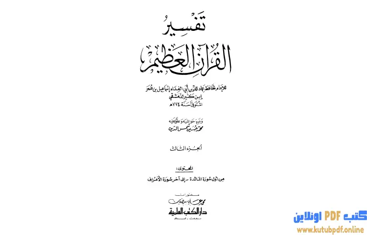 تحميل كتاب تفسير القرآن العظيم 3 PDF – ابن كثير – تفسير القرآن العظيم هو عمل بارز للإمام الحافظ عماد الدين أبو الفداء إسماعيل بن كثير القرشي الدمشقي الذي توفي في سنة 774 ه ويعتبر هذا الكتاب من أفضل التفاسير التي وضعت لتفسير القرآن الكريم حيث يتميز بأسلوبه الفريد ومنهجه العلمي الرصين يعتبر ابن كثير واحدًا من أعظم المفسرين الذين تناولوا القرآن الكريم حيث يسعى لتوضيح المعاني والمفاهيم من خلال تفسيره الذي يعتمد على القرآن نفسه في المقام الأول ثم السنة النبوية الشريفة وأقوال السلف الصالح بالإضافة إلى ما تقتضيه اللغة العربية التي نزل بها القرآن