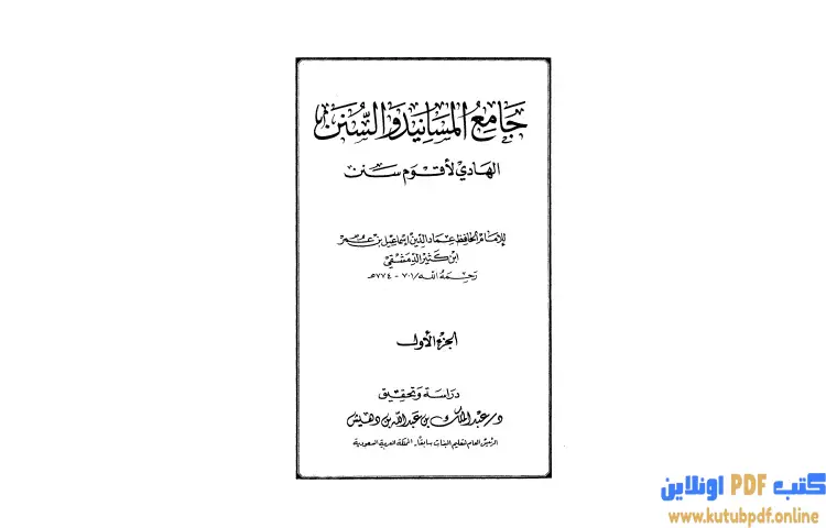 تحميل كتاب جامع المسانيد والسنن الهادي لأقوم سنن 1 PDF – ابن كثير – جامع المسانيد والسنن هو عمل علمي شهير ألفه الحافظ أبو الفداء إسماعيل بن عمر بن كثير القرشي البصري ثم الدمشقي الذي عاش بين عامي 700 هـ و774 هـ ويُروى أن ابن كثير فقد بصره أثناء تأليفه لهذا الكتاب حيث كان يقضي لياليه في الكتابة حتى فقد بصره، ويُذكر أنه كان يتمنى أن يقيض الله له من يكمل هذا العمل الذي اعتبره سهلًا. الكتاب يتضمن جمعًا شاملاً للأحاديث النبوية، حيث اعتمد ابن كثير في ترتيبه على مسند أحمد المرتب على الصحابة الذي ألفه محمد بن عبد الله بن المحب الصامت، وأدخل عليه العديد من الأحاديث من الكتب الستة ومعجم الطبراني الكبير ومسند البزار ومسند أبي يعلى الموصلي.