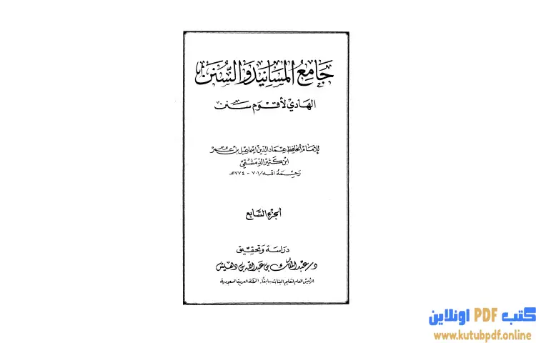 تحميل كتاب جامع المسانيد والسنن الهادي لأقوم سنن 7 PDF – ابن كثير – جامع المسانيد والسنن الهادي لأقوم سنن هو كتاب من تأليف الحافظ أبو الفداء إسماعيل بن عمر بن كثير القرشي البصري ثم الدمشقي والذي عاش بين عامي 700 هـ و774 هـ. يُروى أن ابن كثير فقد بصره أثناء تأليفه لهذا الكتاب ولم يتمه، حيث كان يعمل عليه ليلاً تحت ضوء السراج حتى فقد بصره، وكان يعبر عن أمله في أن يقيض الله له من يكمل هذا العمل، رغم أنه اعتبره سهلاً. يعتمد الكتاب على ترتيب محمد بن عبد الله بن المحب الصامت لمسند الإمام أحمد المرتب على الصحابة، حيث أضاف إليه أحاديث من الكتب الستة ومعجم الطبراني الكبير ومسند البزار ومسند أبي يعلى الموصلي.