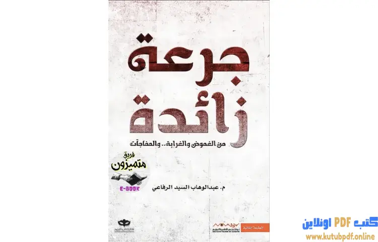 تحميل كتاب جرعة زائدة PDF – عبدالوهاب السيد – جرعة زائدة هي مجموعة قصصية متنوعة للكاتب عبدالوهاب السيد، تتميز بكونها تنتمي إلى عوالم مختلفة وتقدم قصصًا خارجة عن المألوف. تتضمن المجموعة ثماني قصص تحمل في طياتها الغموض والتشويق، حيث تمزج بين عناصر الغرابة والأسلوب السلس الجميل. تبدأ كل قصة بحدث محوري يتصاعد بعده السرد بسرعة نحو نهاية غير متوقعة، مما يمنح القارئ تجربة مثيرة مليئة بالتشويق.