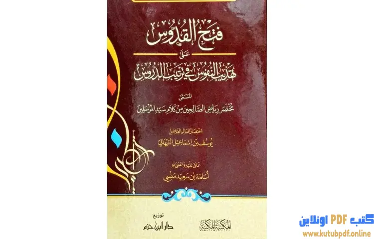 تحميل كتاب فتح القدوس على تهذيب النفوس على ترتيب الدروس PDF – يوسف بن إسماعيل النبهاني – فتح القدوس على تهذيب النفوس هو كتاب مختصر من تأليف يوسف بن إسماعيل النبهاني يهدف إلى تقديم مجموعة من الأحاديث الصحيحة التي تعزز الروحانية وتوجه السلوك نحو الآخرة. يجمع الكتاب بين الترغيب والترهيب والزهد، حيث يتناول مواضيع متعددة تتعلق بالعبادات والمعاملات والعادات.