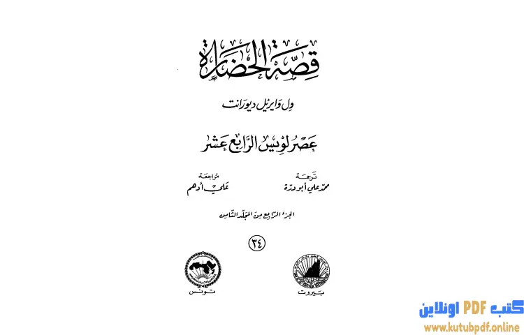 تحميل كتاب قصة الحضارة 34 عصر لويس الرابع عشر 4 PDF – ول ديورانت – تعتبر "قصة الحضارة 34 عصر لويس الرابع عشر" من تأليف المؤرخ والفيلسوف الأمريكي ويل ديورانت وزوجته أريل ديورانت عملًا موسوعيًا تاريخيًا فريدًا من نوعه يتناول تاريخ الحضارات البشرية منذ بدايتها وحتى القرن التاسع عشر. هذه السلسلة تتكون من أحد عشر جزءًا وتتميز بموضوعيتها ومنهجها العلمي الدقيق. استغرق إعدادها عقودًا من الزمن حيث قام المؤلف بقراءة العديد من المؤلفات والكتب التي تغطي مختلف جوانب التاريخ، بالإضافة إلى رحلاته المتعددة حول العالم لاستكشاف الثقافات المختلفة.