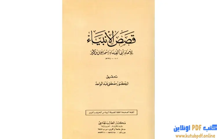 تحميل كتاب قصص الأنبياء PDF – ابن كثير – كتاب قصص الأنبياء لابن كثير يعد من الأعمال القيمة التي تسلط الضوء على قصص الأنبياء المذكورة في القرآن الكريم، حيث يقدم سردًا دقيقًا لحياة هؤلاء الأنبياء الذين يعتبرون صفوة الخلق وخيرتهم. يهدف الكتاب إلى توجيه القارئ نحو التأمل في العبر والدروس المستفادة من قصص هؤلاء الأنبياء، حيث إن هذه القصص ليست مجرد حكايات، بل هي دروس وعبر لأولي الألباب.
