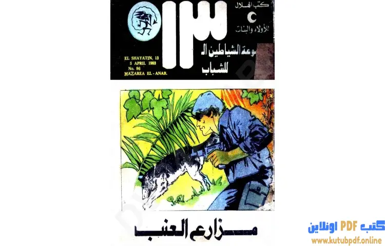 تحميل كتاب مزارع العنب PDF – محمود سالم – مزارع العنب هي رواية من تأليف الكاتب محمود سالم وتندرج ضمن سلسلة الشياطين التي تضم 13 جزءا. بدأت السلسلة بالصدور في لبنان قبل أن تنتقل إلى مصر، وتتميز أحداث الروايات بالحركة والتشويق والإثارة من خلال المغامرات التي يقوم بها 13 فتى وفتاة يمثلون بلدانهم العربية. هؤلاء الأبطال يتصدون للمؤامرات التي تستهدف الوطن العربي، حيث يتدربون في منطقة الكهف السري التي لا يعرفها أحد، ويتقنون فنون القتال واستخدام المسدسات والخناجر بالإضافة إلى الكاراتيه، كما يجيد كل منهم عدة لغات.