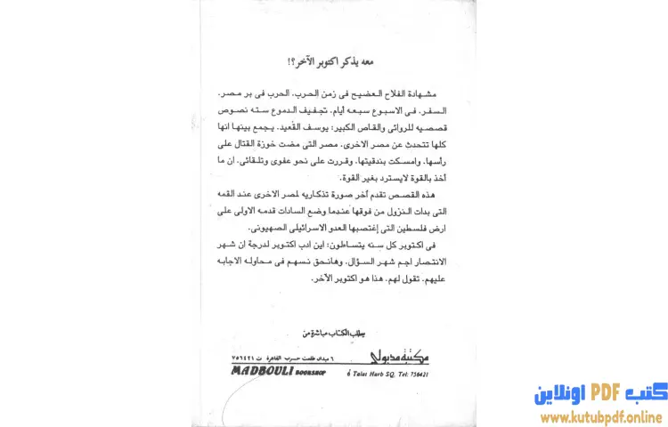 تحميل كتاب من يذكر مصر الأخرى PDF – يوسف القعيد – يعتبر كتاب "من يذكر مصر الأخرى" للكاتب يوسف القعيد عملاً أدبياً مميزاً يتناول موضوعات متعددة تتعلق بمصر وثقافتها وتاريخها. يعكس الكتاب رؤية فريدة للكاتب تجاه الحياة والمجتمع المصري، حيث يسعى إلى تسليط الضوء على جوانب قد تكون مغفلة أو غير معروفة لدى الكثيرين.