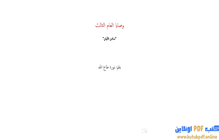 تحميل كتاب وصايا العام الثالث PDF – نورة طاع الله – وصايا العام الثالث هو الكتاب الثالث الذي يحمل مجموعة من الوصايا القيمة التي كتبتها أم لابنها سادن تاليان يتضمن الكتاب نصائح وإرشادات تتعلق بالحياة والعلاقات الشخصية والنجاح حيث تهدف هذه الوصايا إلى توجيه القارئ نحو التفكير الإيجابي وتحقيق الأهداف