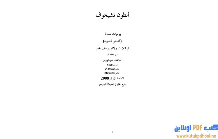 تحميل كتاب يوميات مسافر PDF – أنطون تشيخوف – يعد أنطون تشيخوف من أبرز الأسماء في الأدب الروسي والعالمي، وقد قدم في عمله "يوميات مسافر" رؤية فريدة للحياة الإنسانية. في هذا الكتاب، يلتقط تشيخوف مشاهد متنوعة تعكس سلوكيات ونماذج مختلفة من البشر، متناولاً الجوانب المضحكة والمبكية منها، بالإضافة إلى المواقف الجادة والساخرة. يسعى تشيخوف من خلال أسلوبه الأدبي الفريد إلى استكشاف أعماق النفس البشرية، مما يجعل القارئ يتفاعل مع تجارب الشخصيات التي يصورها.
